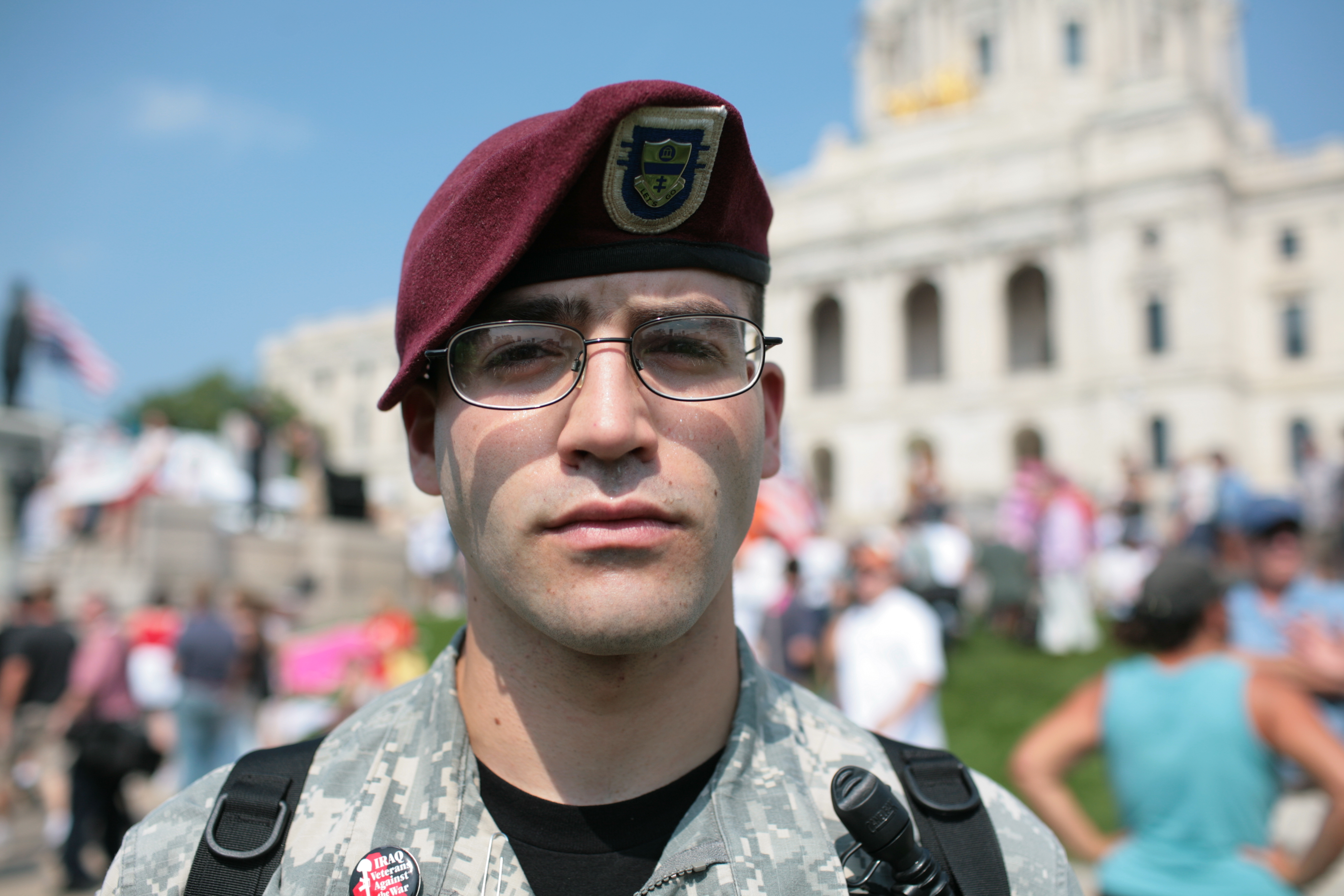 Vor dem Kapitol in St. Paul steht ein junger Mann in der Uniform eines Fallschirmjägers der US-Armee. Es ist Ian J. Lavallee, der sich für die Organisation Iraq Veterans Against the War engagiert. Nach einem Jahr als Soldat, zahlt Lavallee den Preis für den Krieg. Kaputte Knie und kaputte Wirbelsäule, schwere Depressionen, ein Selbstmordversuch. Nach St. Paul, wo die Republikaner ihren Konvent abhalten, ist er gekommen, um die Forderungen seiner Organisation zu thematisieren: Sofortiger Rückzug, Kompensationszahlungen an den Irak, Gesundheitsversicherung und psychologische Betreuung für Veteranen.