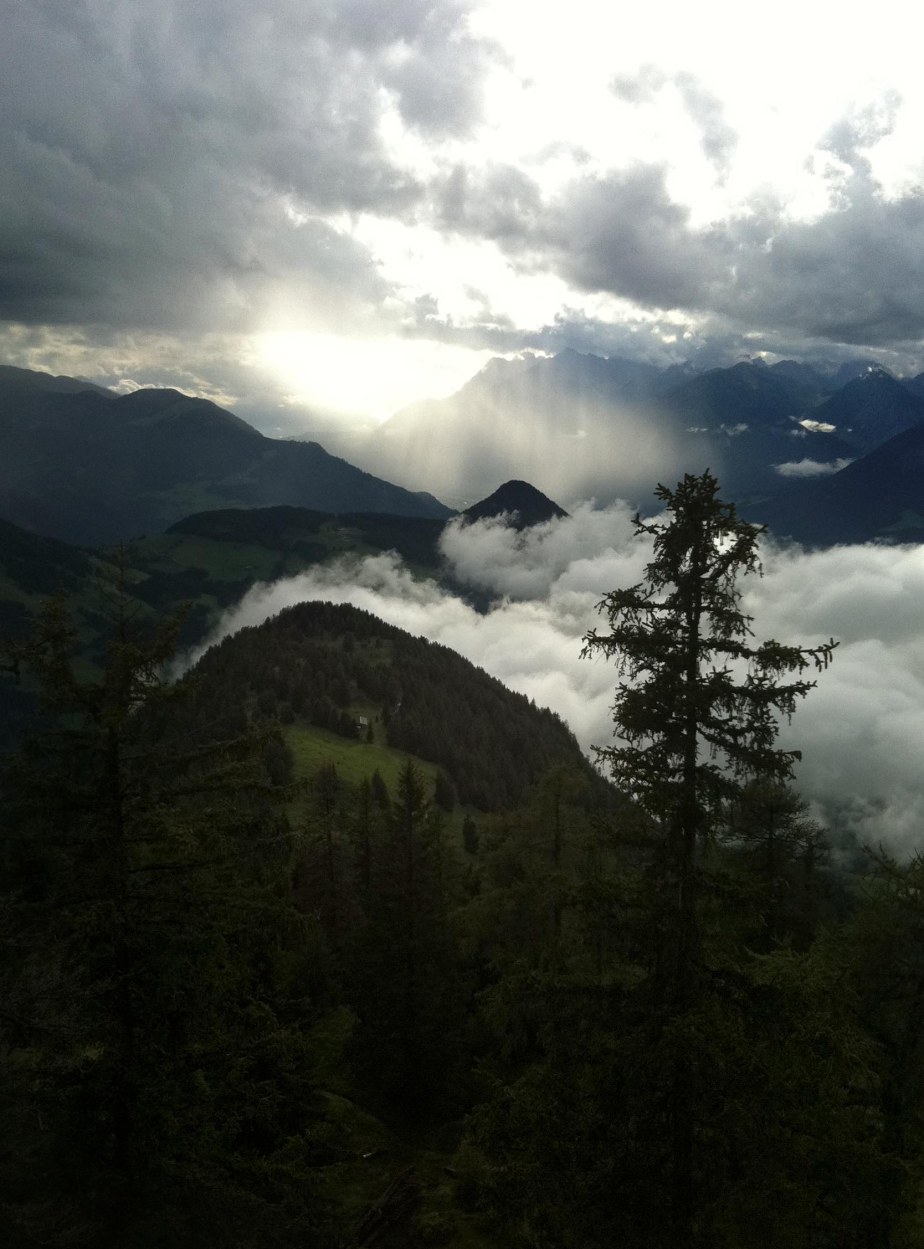 Der eingangs beschrieben Zustand muss so etwas sein wie eine instinktive Überlebensstrategie aus einer Zeit, in der die Menschen Nomaden waren. Würde der Geist beim Umherziehen einmal dahin wandern und einmal dorthin, kämen wir nirgends unbeschadet an. Beim Erklimmen von Steigungen etwa, wäre Zerstreuung fehl am Platz. Da ziehe ich die Kappe tiefer ins Gesicht, senke den Blick Richtung Oberschenkel und konzentriere mich auf den Rhythmus der Kraft. Treten. Atmen. „Pumpen“, kommandiere ich dazu, „pumpen!“. Bis der Scheitelpunkt erreicht ist, schaue nicht mehr nach vorn.