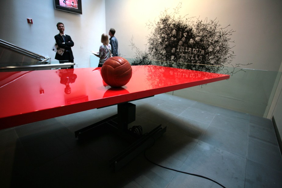 Die Schimpftiraden mit den technischen Anlaufschwierigkeiten gehören zur Installation von Julius Deutschbauer. Der österreichische Künstler will den Ausstellungsbesucher mit eben jenen Verbalinjurien beschallen, die dieser im Stadion sonst vielleicht anderen entgegen schleudert. Für das Projekt hat er Schimpftiraden der Fans in mehreren Sprachen gesammelt und von Schauspielern auf Band sprechen lassen…